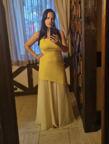 El vestido es hermoso, el color es exactamente como en las fotos. ¡Muy agradable de usar, lo puse para una boda y todos me felicitaron!